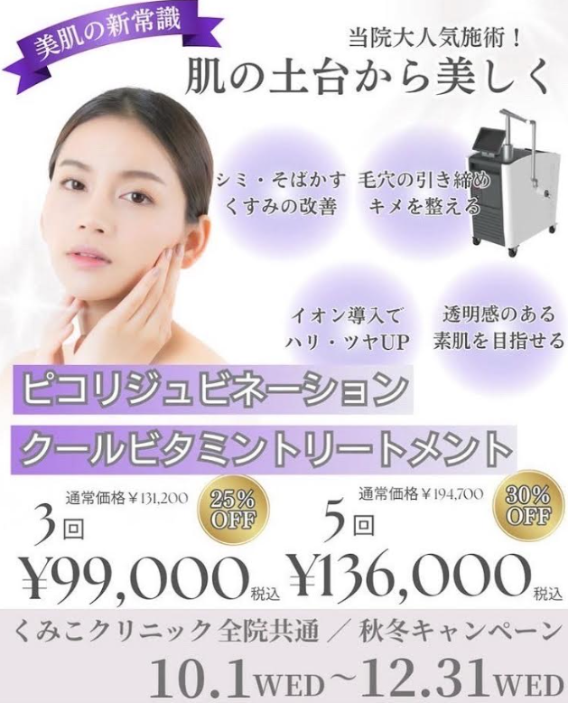 しみ治療、たるみ治療、ニキビ治療から多岐に選択できるプランとなっています!